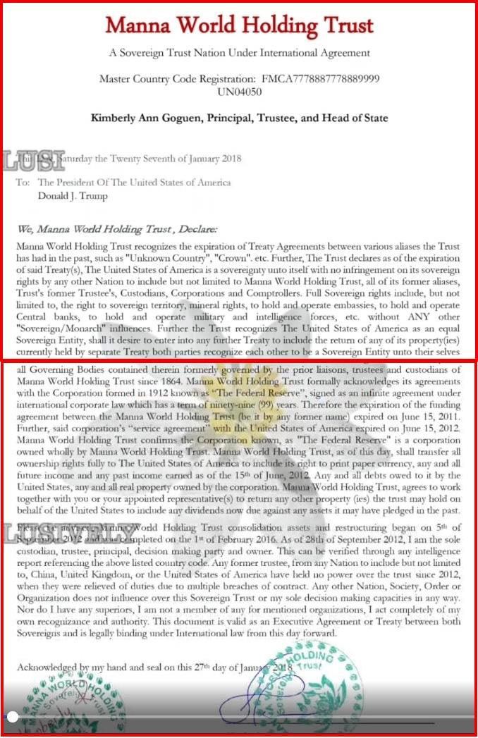 「2018年1月の古い手紙」Manna World Holding Trust